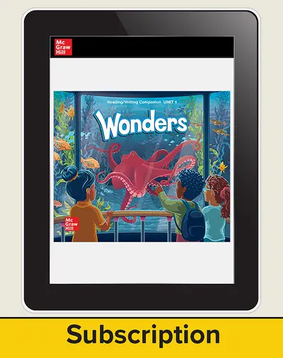 The Wonders digital student workspace offers students a digital version of everything in print, including the Reading/Writing Workshop, Literature Anthology, Leveled Readers, and more. Students can read the entire week's selections online; keep track of assignments, store notes, and maintain a portfolio of work; get help with a visual glossary and other resources; and communicate with the teacher and classmates. This is a 1 year subscription.