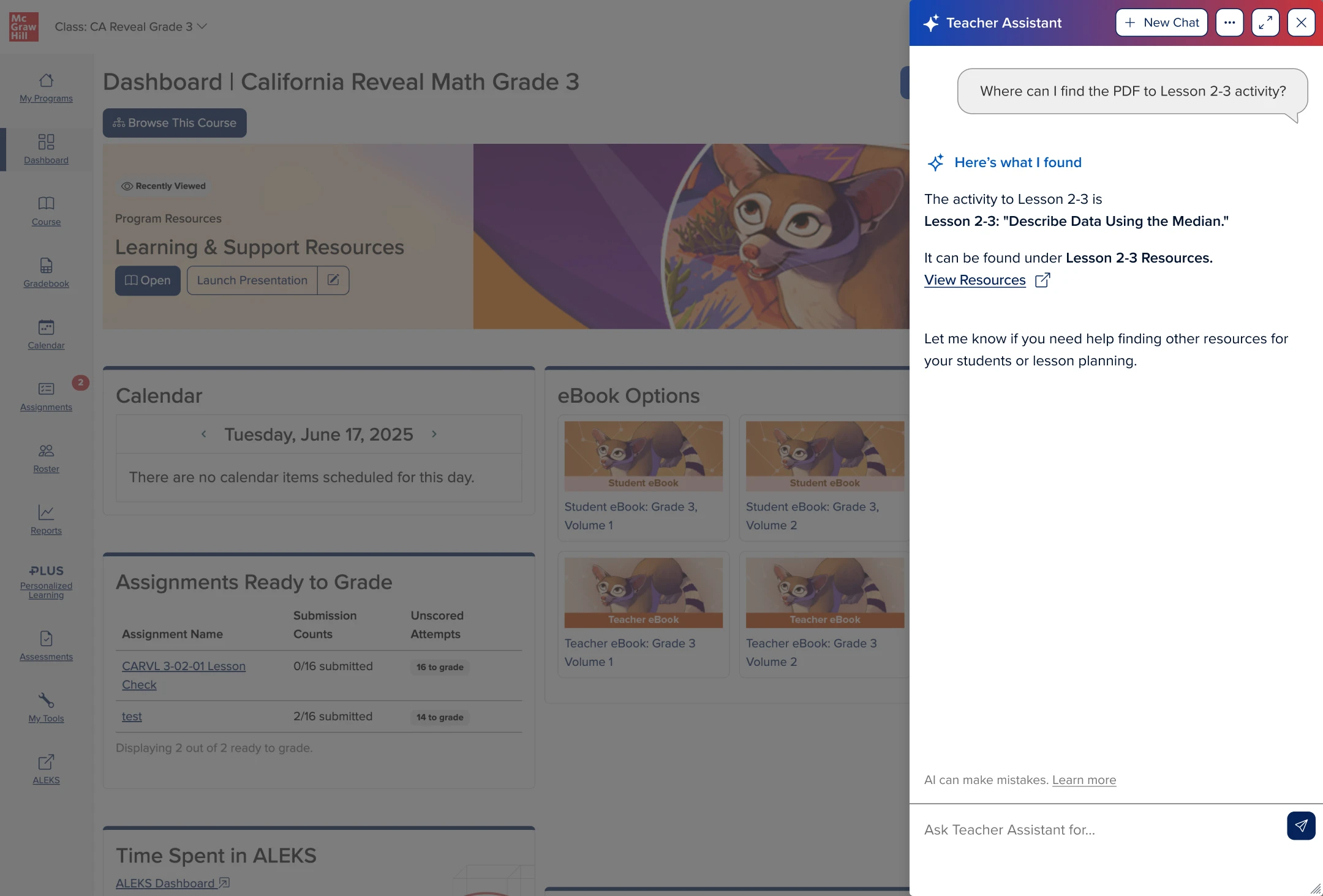 Teacher Assistant introduces a new AI-powered way to help educators meet that challenge. Built directly into McGraw Hill’s K–12 digital learning solutions, it connects curriculum resources with student data through natural-language interactions that support lesson planning, pacing, and personalization. Grounded in instructional design and shaped by ongoing teacher feedback, the tool reflects McGraw Hill’s strategic approach to AI: strengthening educator expertise and unlocking more value from high-quality curriculum. To better understand the vision behind Teacher Assistant and how it’s evolving in real classrooms, we spoke with Shawn Francis, Senior Director of AI, Assessment, and Personalization Product Management for McGraw Hill School.