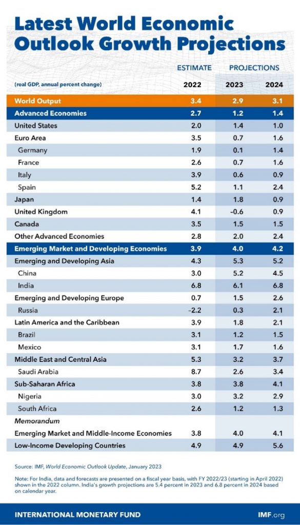 On the third Brexit anniversary, the International Monetary Fund predicted that U.K. will be the only G7 economies to go into recession with an expected contraction of it economy by 0.6% in 2023. Even E.U. is expected to recover with an economic growth of 0.7% in 2023 (See image below – 4th vs. 10th row):