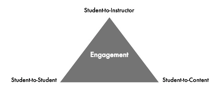 - Engaging students virtually requires students to interact with 1) each other, 2) their instructor, and 3) the content.