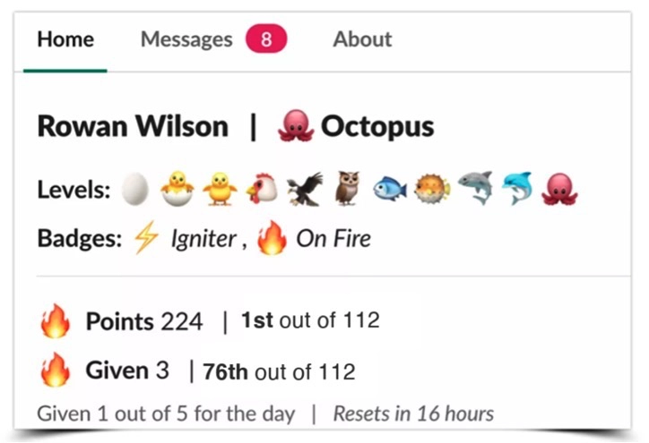 ClassCred uses a point system to gamify recognition and facilitate connections. In ClassCred, every 🔥 is worth 1 point. As students earn points, their level increases. Leveling provides a fun incentive to participate in the giving and receiving of 🔥. ClassCred also awards badges to the student that gives and receives the most 🔥 each week. Badges are another way of encouraging participation. These mechanisms facilitate faster connections in a classroom setting that may only last a few weeks.