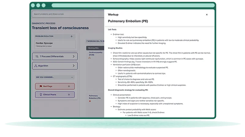 Enhance your curriculum with evidence-based frameworks and AI-powered patient encounters that complement faculty instruction, bring consistency to clinical reasoning training, and help students build confidence in diagnostic accuracy.