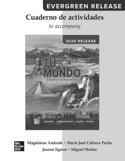 Tu mundo immerses the Introductory Spanish classroom in a culturally rich world, guiding students to explore the connections between language and culture. Instructors receive user-friendly resources to support students in intensive communicative practice, building confidence to interact meaningfully in Spanish. Connect enhances Tu mundo with grammar tutorials, adaptive activities, engaging videos, applications to students' professional lives, and tools for individual or group recordings.