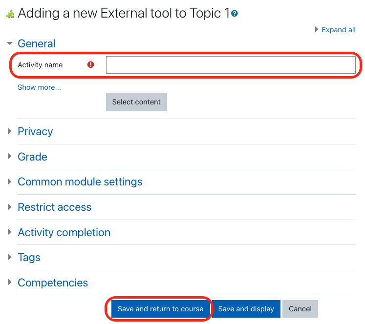 Add a Connect tool link to a Moodle course using LTI Advantage for streamlined access.