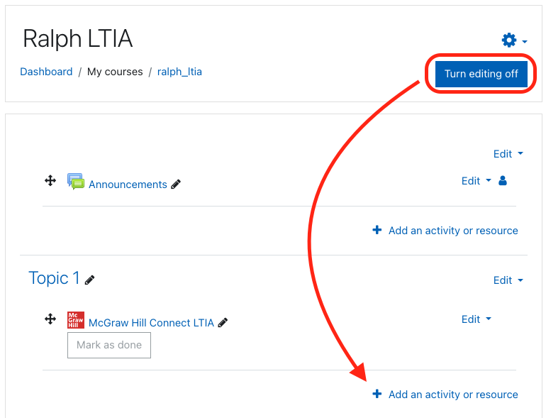 - Select McGraw Hill Connect LTIA from the list (this title may differ in your Moodle instance).