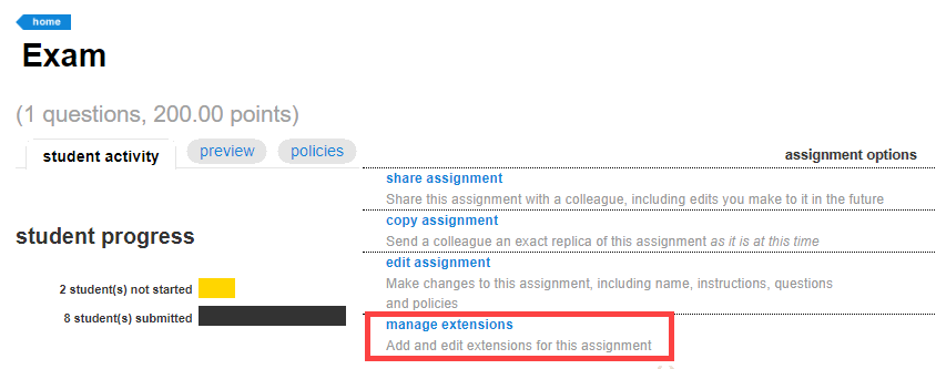 4. Click "assignment options", top right, then click "manage extensions"