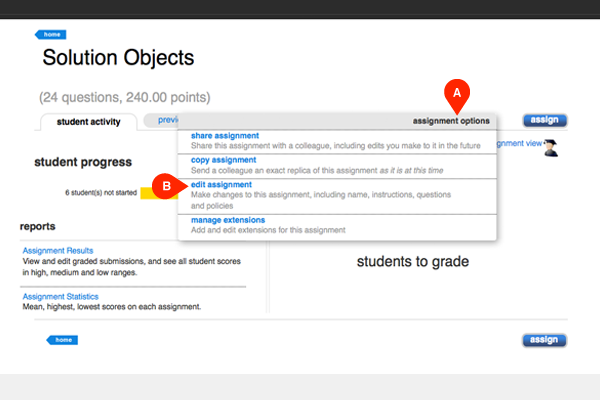 Click assignment options (A) and select edit assignment (B).