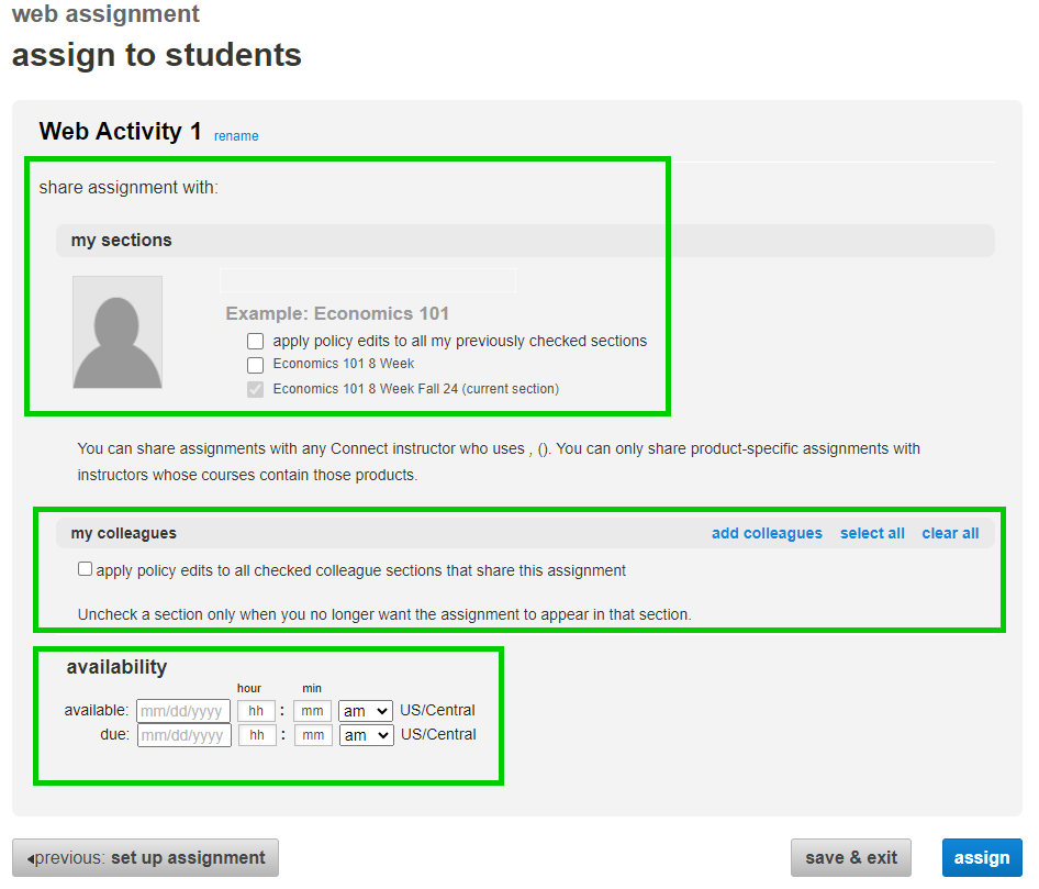 On the next page, select your sharing preferences if sharing the assignment, and enter the Start due dates before clicking assign