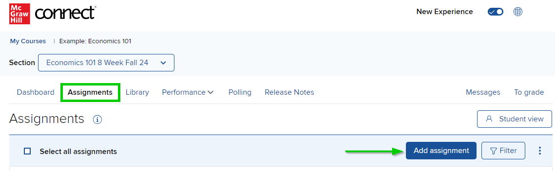 - Click the Add assignment button