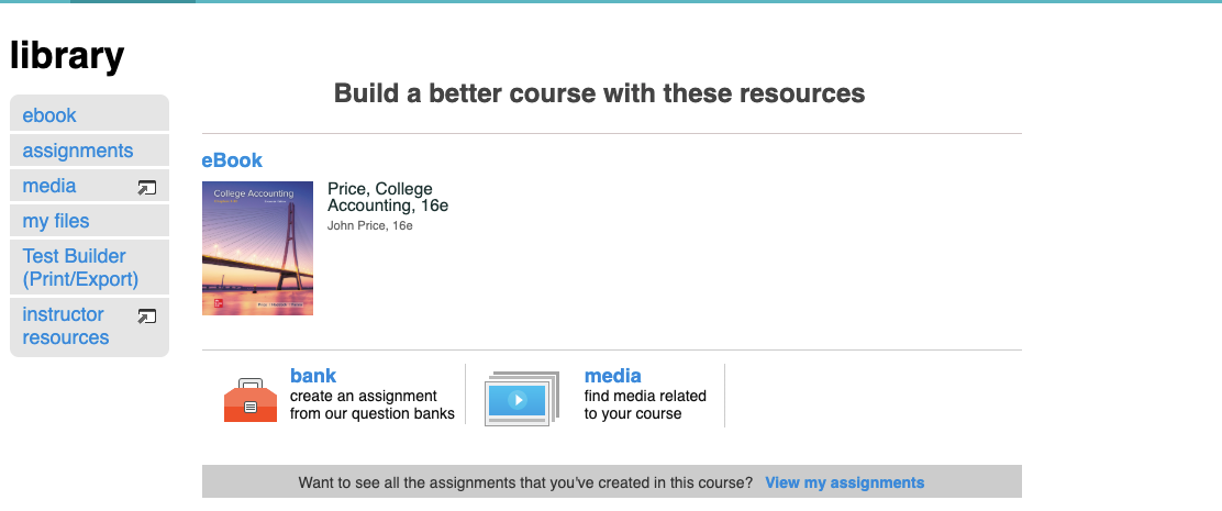 - assignments: access the assignments that you’ve created in the selected course.