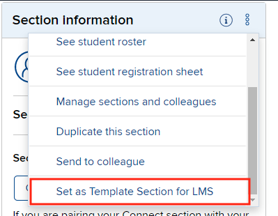 In your paired Connect section, locate and click on Set as Template Section for LMS (located under the Section Information gear).