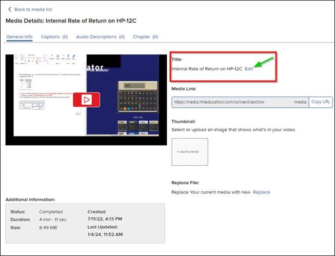 - Click Edit to the right of the recording title and add the appropriate number to the beginning, for example, "01 Internal Rate of Return on HP-12C"