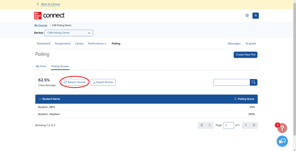 - NOTE: If the new assignment is not available in your LMS select the “Resync Scores” button in the Polling Scores tab within the Polling feature.
