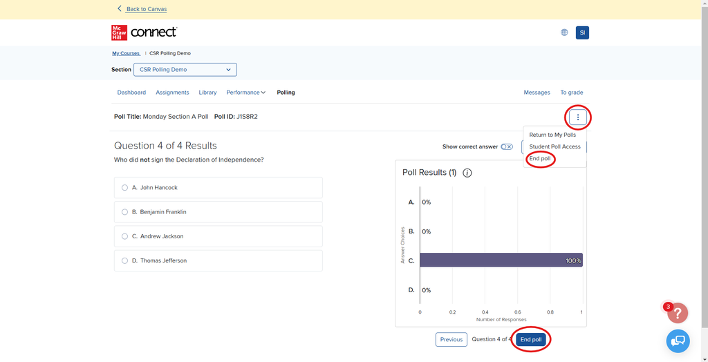 - At the end of the poll ensure you select “End Poll” after the final question OR from the three dot menu if you did not make it through every question in the poll.