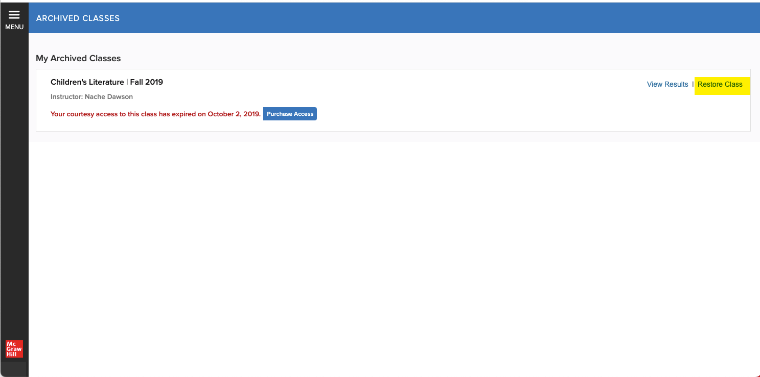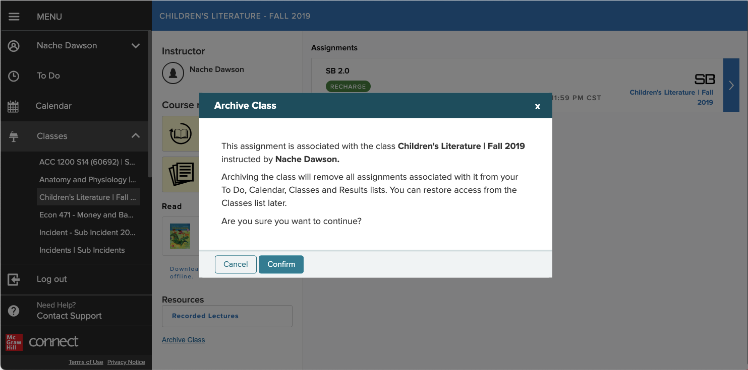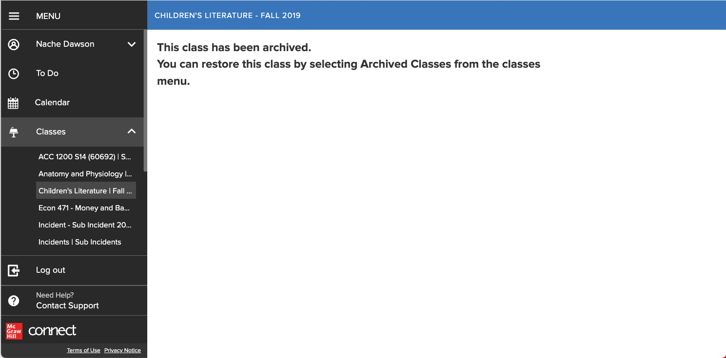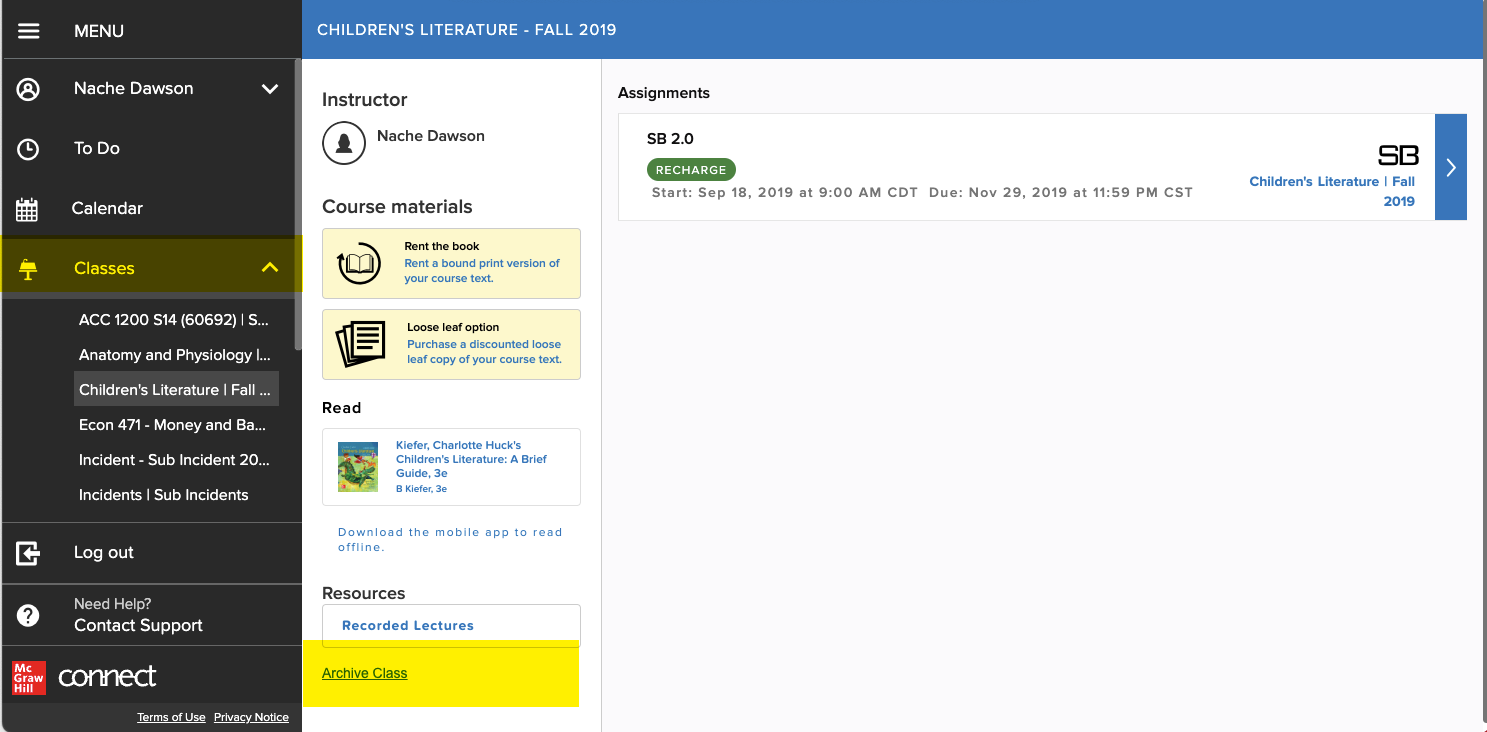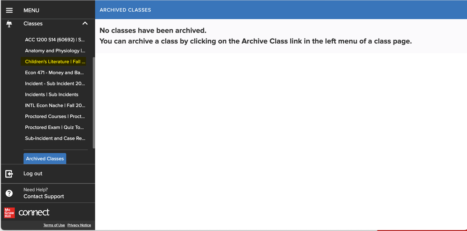 Access archived Connect classes to review past coursework.