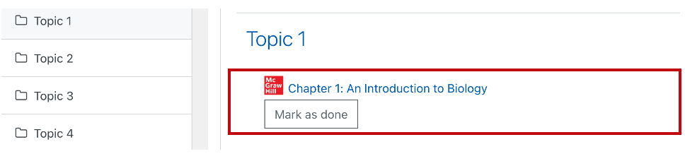 Step 2 In your LMS course, locate a Connect assignment and click on it. The interface and assignment icons will differ between different LMS' and may look slightly different. Below are examples of how the assignments will appear in Blackboard, D2L, Moodle, and Canvas.