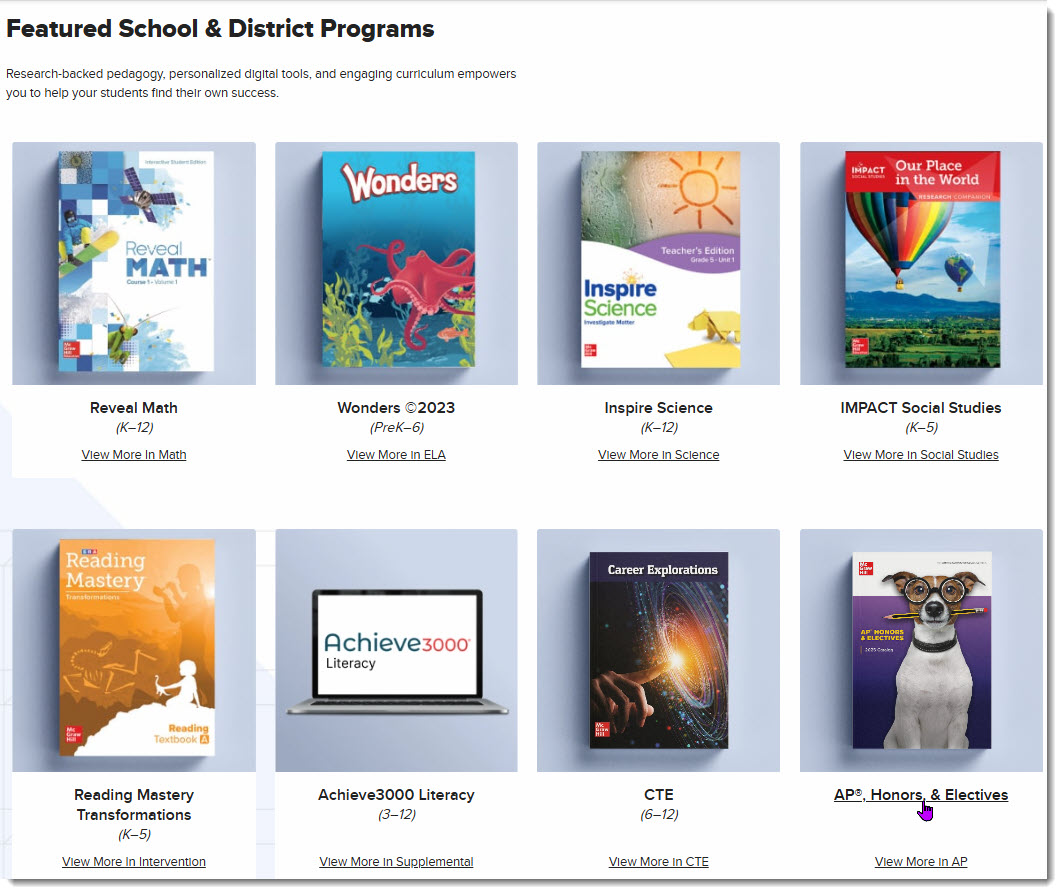 Scroll down to Featured School & District Programs and click on the AP®, Honors, & Electives link.