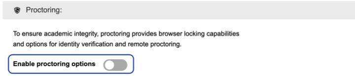 4. You’re now on the policy-setting page and will see a new proctoring option above your regular Connect assignment setting options. Note: By default, all proctoring options are turned off. To enable proctoring options, click on the toggle.