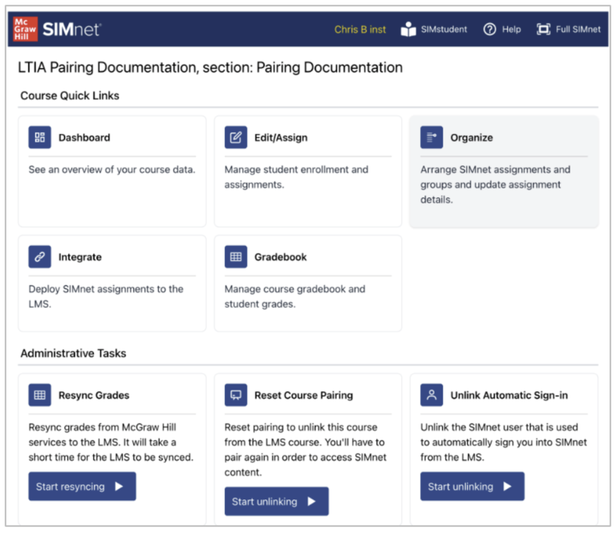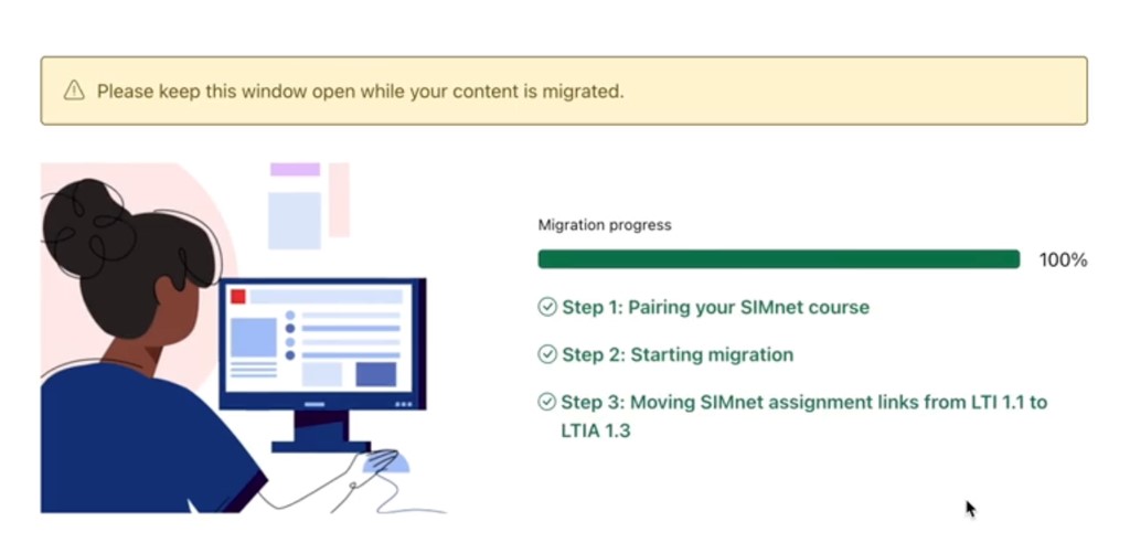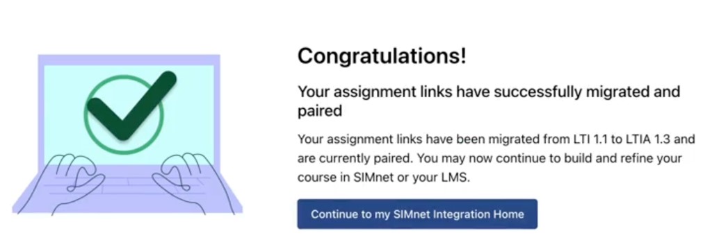 Once your LMS course has successfully migrated from SIMnet LTI 1.1 to McGraw Hill