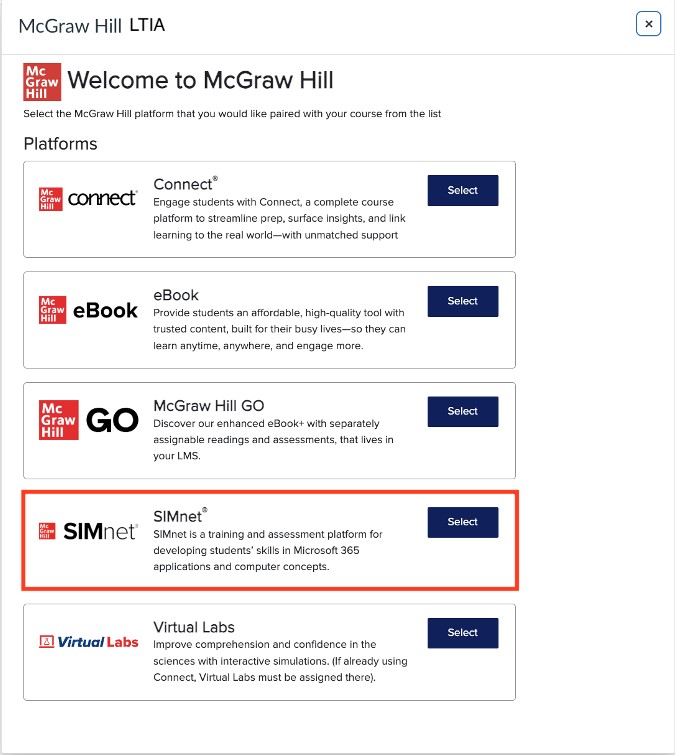 Integration, we recommend that you or your LMS admin disable the “McGraw Hill SIMnet” 1.1 tool in your LMS.