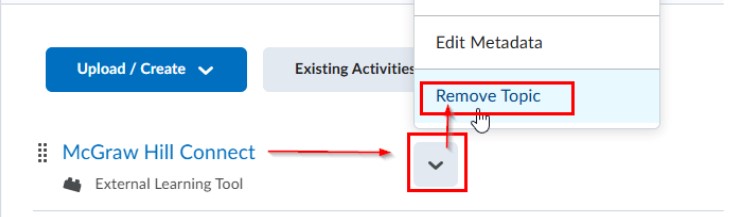- Add a module if needed or use the 3 dots to the right of any module to select the “McGraw Hill Integration” Tool.