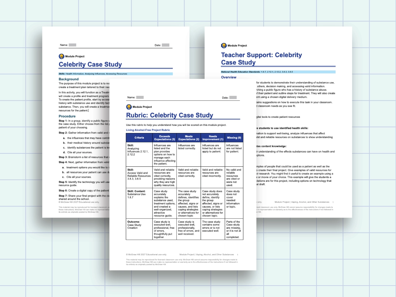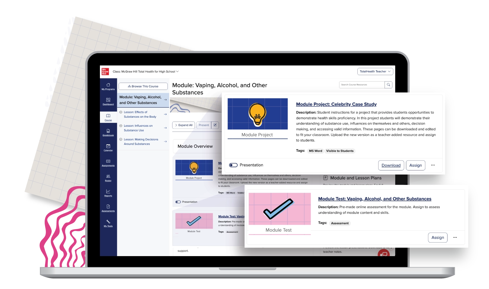 Total Health offers two assessment options for each module: short tests to check for student understanding and customizable larger projects that challenge them to demonstrate their knowledge via practical applications. These activities encourage students to take ownership of their learning and provide regular opportunities to collaborate, reflect, and practice various health and wellness skills.