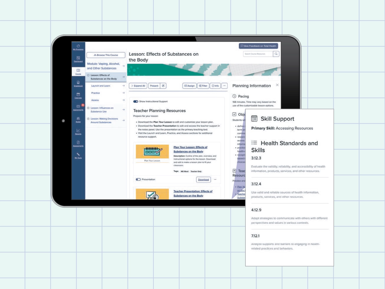 Total Health explicitly identifies how each module aligns to SHAPE America’s 2024 National Health Education Standards and undergoes regular updates reflecting the latest research and best practices.
