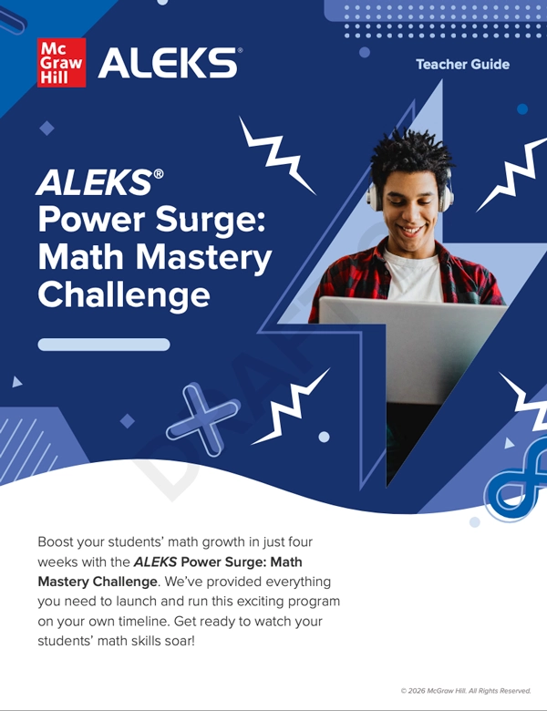 We’ll spotlight classroom moves that spark curiosity, boost confidence, and keep students motivated—from goal-setting routines and data-driven student groups to test-taking prep for the Initial Knowledge Check and interactive ALEKS Notebooks. You’ll leave with a playbook of ideas to help students take ownership of their learning and cheer each other on—plus a sneak peek at classroom-ready resources that can support your strategy, including downloadable tools for tracking progress and setting goals.