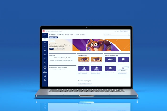 Revela las Matemáticas California is a full-Spanish math curriculum designed for dual-language and bilingual classrooms. Mirroring the structure and instructional approach of California Reveal Math, the program delivers authentic, high-quality Spanish across print and digital experiences, ensuring coherence across languages.