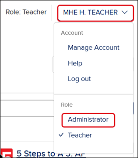 If you have a Teacher role and an Administrator role, you will need to click on your Profile button at the top-right and select Administrator from the menu.