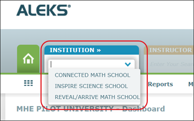 If you are an Administrator assigned at the school level instead of the district level, and are assigned to multiple schools, click on your Profile button and select the correct Organization before launching ALEKS.