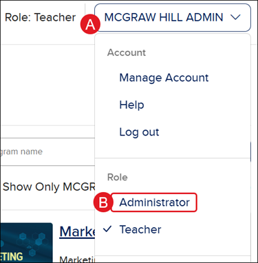 If you have both the Teacher role and Administrator role, click the profile button (A) at the top-right of the page.