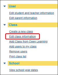 Click the Edit class information link from the Class section. Click the Edit link next to the class the student is assigned to.