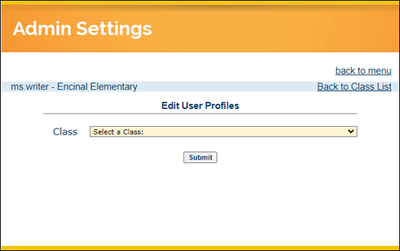 Click the Edit student and teacher information link from the User section. Select the Class from the drop-down. Click the Submit button.