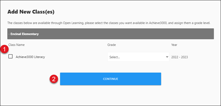 1. In the Add New Class(es) pop-up, check the box next to the classes you want to be able to access through Open Learning.