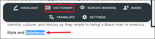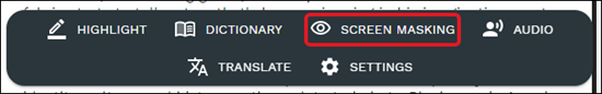 Screen Mask is a document reading tool that follows your mouse or touch to help eliminate page distractions so you can focus on reading one passage at a time.Select any text in the lesson to bring up the Lesson Tools Menu. Select Screen Masking from the pop-up menu.