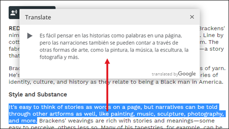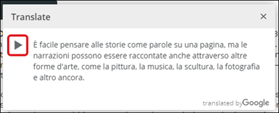 On the Translate pop-up, click the Play button to have the translated text read aloud.
