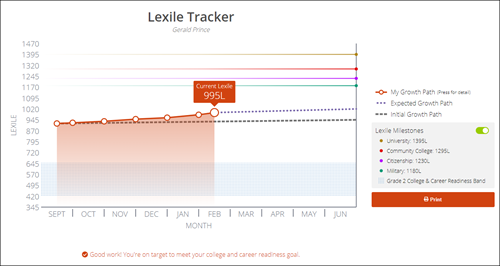 Click the Print button on the right of the Lexile Tracker graph to print the current view.