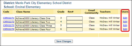 Or you can select Edit class information from the menu. In the Users column, click the Edit link next to the class you want to edit settings for.