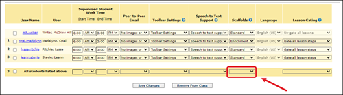 5. In the Scaffolds column, click on the drop-downs for the individual you want to change the setting for.