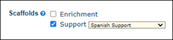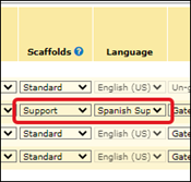 For students that you select the Support option for Scaffolds, you will then be able to select what language is needed in the Language column.