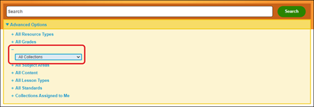 Teachers can also access Advanced Search by clicking the magnifying glass without inputting any search terms.