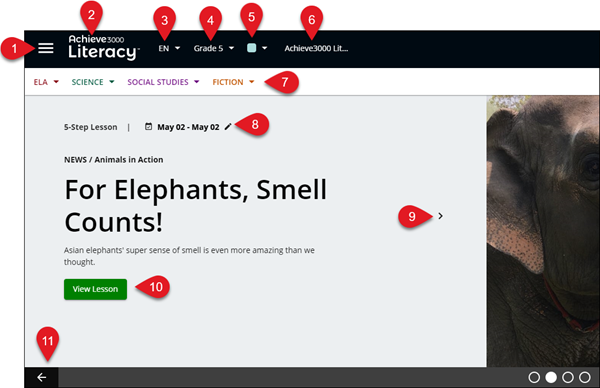 - Lesson Carousel Navigation – If you have more than one lesson scheduled for the day, you can navigate between the lessons by using the arrows and dots at the bottom of the lesson carousel.