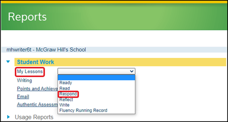 To view the answers the student had selected for the Respond step, you will want to generate a Student Work Report. For more information on generating Student Reports, read the Achieve3000 Literacy - Student Reports article.