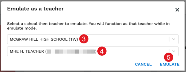 Administrators can use the Emulate feature to log in as any teacher in their district or school. While emulating as a teacher, the administrator can see class- and student-level data and easily take actions the teacher can, such as adding a co-teacher to their class or assigning texts for students.