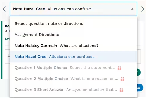 Notes shared by the teacher or classmates can be viewed by clicking on the drop-down menu.