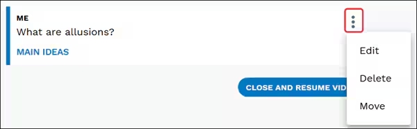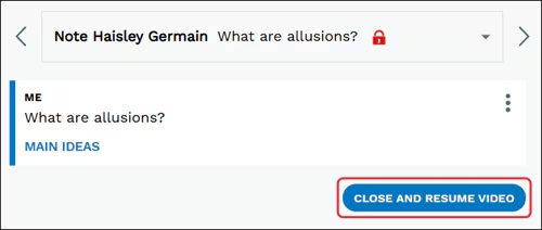 Click the Close and Resume Video button to continue viewing the video and have the option to add more notes.