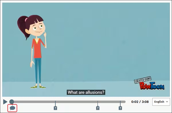 The note will show as a speaker bubble on the video play bar. While playing the video, when it comes to a point in the video that a note is attached, it will pause the video until the student selects to continue watching.