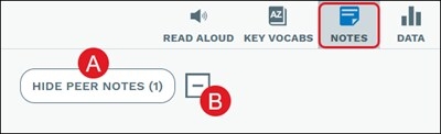 Clicking the Hide Peer Notes button (A) will hide all notes shared by other students with the class. Click the Collapse/Expand button (B) will open and close all peer notes at once.
