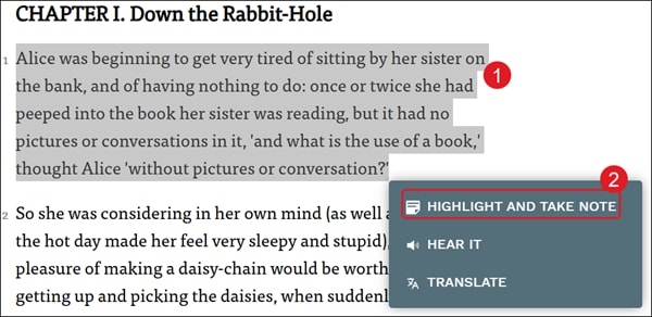 2. Click HIGHLIGHT AND TAKE NOTE from the menu.